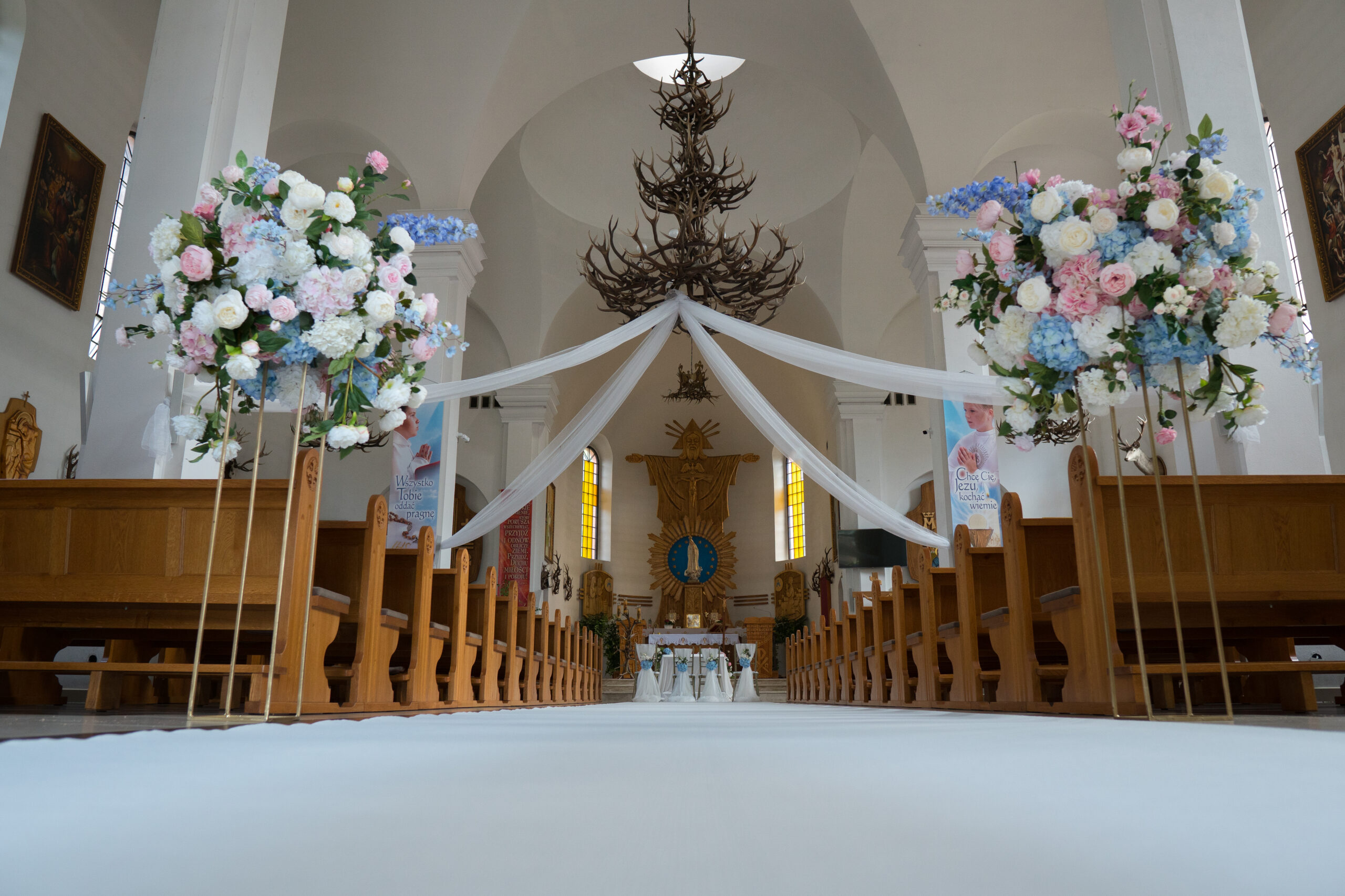 – wynajem dekoracji klęcznika kwiatami jedwabnymi